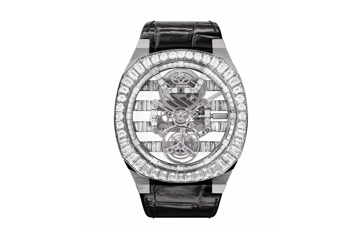 قوّةً. وتتميّز بتوربيون هيكلي وبترصيع الماس الباغيت بما في ذلك ٦٠ ماسة على جسور الميناء العائمة و ٤٤ ماسة على الإطار. ويدور توربيون طائر عند الساعة ٦كلّ دقيقة ليتماشى مع الجسر مرّة واحدة خلال رحلته. تعمل هذه التحفة الساعاتية بنظام التقويم الدائم بواسطة كاليبر عيار GG727.25.PC، الذي يعرض الوقت مع الأيام، والأشهر، والسنوات وطور القمر، ولن يحتاج للتعديل حتّى عام ٢١٠٠. وتأتي هذه الساعة ب ٣ إصدارات من الذهب والفولاذ.