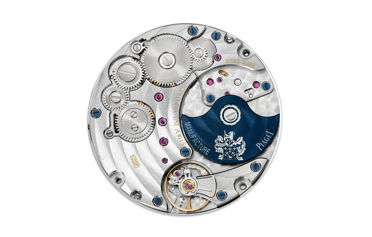 ولبناء عيار بياجيه الجديد 1255P الفائق الرقّة بقياس ٤ ملماً، اعتمدت الدار عيار 1200P والذي نتج بعد ٥٠ عاماً من تصميم العلامة التجارية لنظام حركة 12P في عام ١٩٦٠. ويتميّز الطراز الجديد بميناء داكن باللون الأخضر الزمردي وزخرفة مفصّصة مع ثلاثة ميناءات فرعية للتاريخ والشهر، مع إشارة إلى السنة الكبيسة، ويوم الأسبوع في موقع الساعة التاسعة والثانية عشر والثالثة، إضافة إلى إشارة إلى مراحل القمر في موقع الساعة السادسة. وتتميّز الساعة بلمسة بصرية خلّابة ومؤشرات بتقنية ®SuperLumiNova.