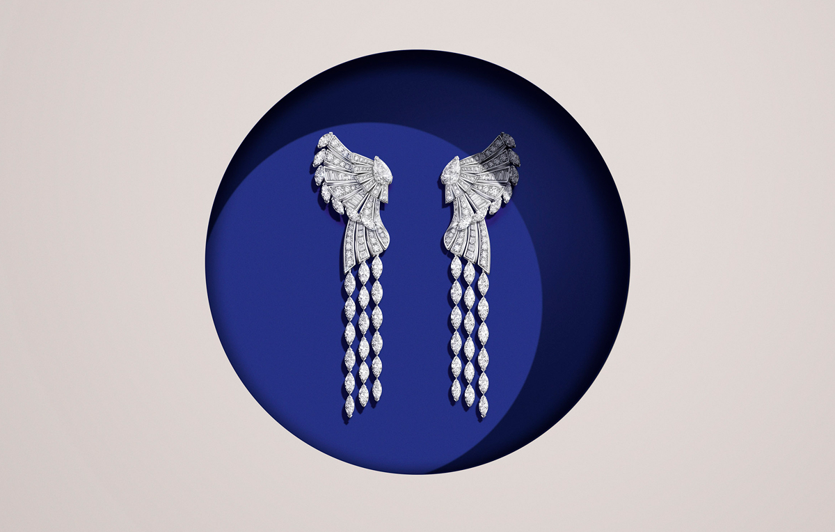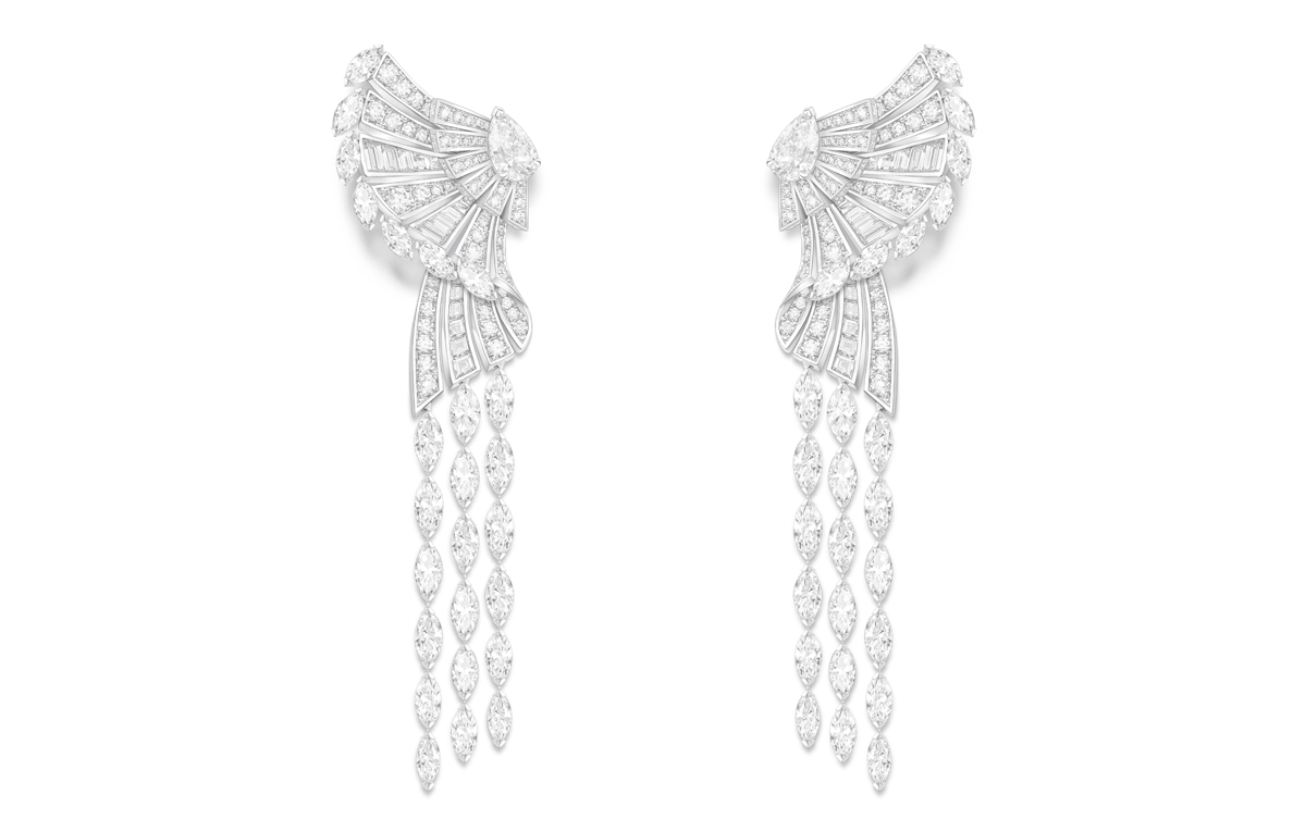 ويتألق عقد Exalting Dance المتحرّك بزوج من أحجار الأكوامارين ودوّامة من الماسات الحلزونية. أمّا أقراط الأذن من الطقم ذاته والمرصّعة بماسات صغيرة ومركيز وباغيت، فتبرز حرفية الدار المبدعة التي تجمع بين الجرأة العصرية والأناقة الخالدة. وتتميّز الأقراط بسهولة استعمال توازي تصميمه المعقّد.