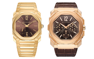Now available in gold, the new version of the Octo Finissimo Automatic is a distillation of these two qualities. Whether in rose or yellow gold, the play on contrasts between these gleaming shades and the brown- lacquered dial gives these models a powerful personality. Another contrast seen for the first time in this collection lies in the alternating matt and polished effects on the case and bracelet, heralding a brilliant chapter in the saga of the Finissimo line.