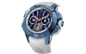 The Jean Bugatti features an elegant dial with extensive rose gold appliques, and the overall appearance of a 1930’s Bugatti roadster grille. This groundbreaking mechanical accomplishment is available with a rose gold case and cream-white dial, or a white gold case with blue dial, both of which are limited to 57 pieces. The Jean Bugatti feels like the dashboard of a collectible Bugatti car with the openings at the bottom of the dial feel like the grille and headlights of a 1930’s coupé from Molsheim.