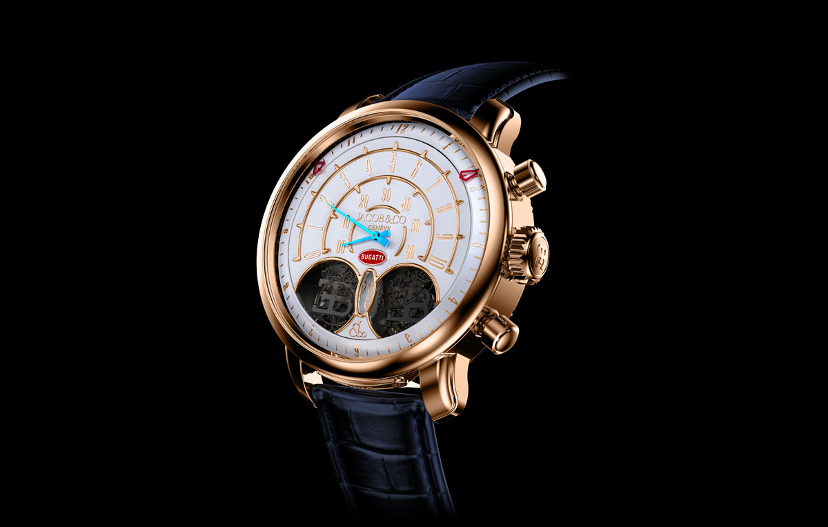 With its 46-mm case, the Jean Bugatti is a new design direction and its extremely sophisticated nature is on par with previous achievements by Jacob & Co. Inspired by the gifted designer and engineer Jean Bugatti, this new timepiece brings retro design to a new level thanks to a singularly advanced movement.