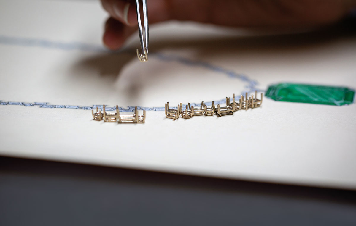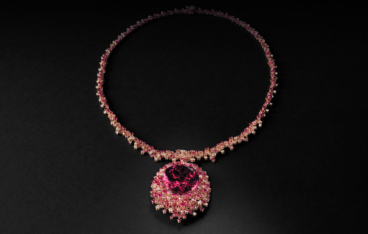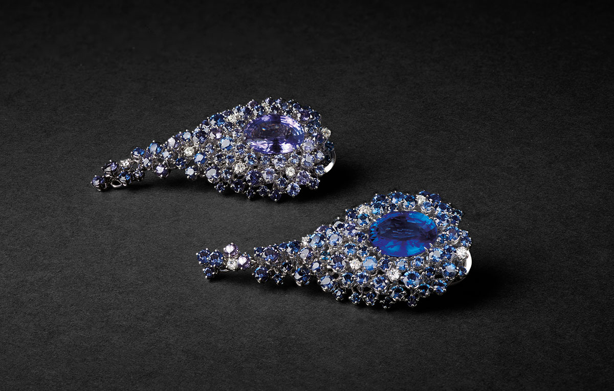 [GGD]: Yes, it was. Normally, we design the piece first and then search for the stone, but for this 100th anniversary collection, we started with the stone. We spent years traveling the world, handpicking rare stones—intensive blue sapphires, Paraiba tourmalines, and special emeralds. The stone itself becomes the centerpiece, and we designed the pieces around it. It was a different approach for us, but it worked beautifully.