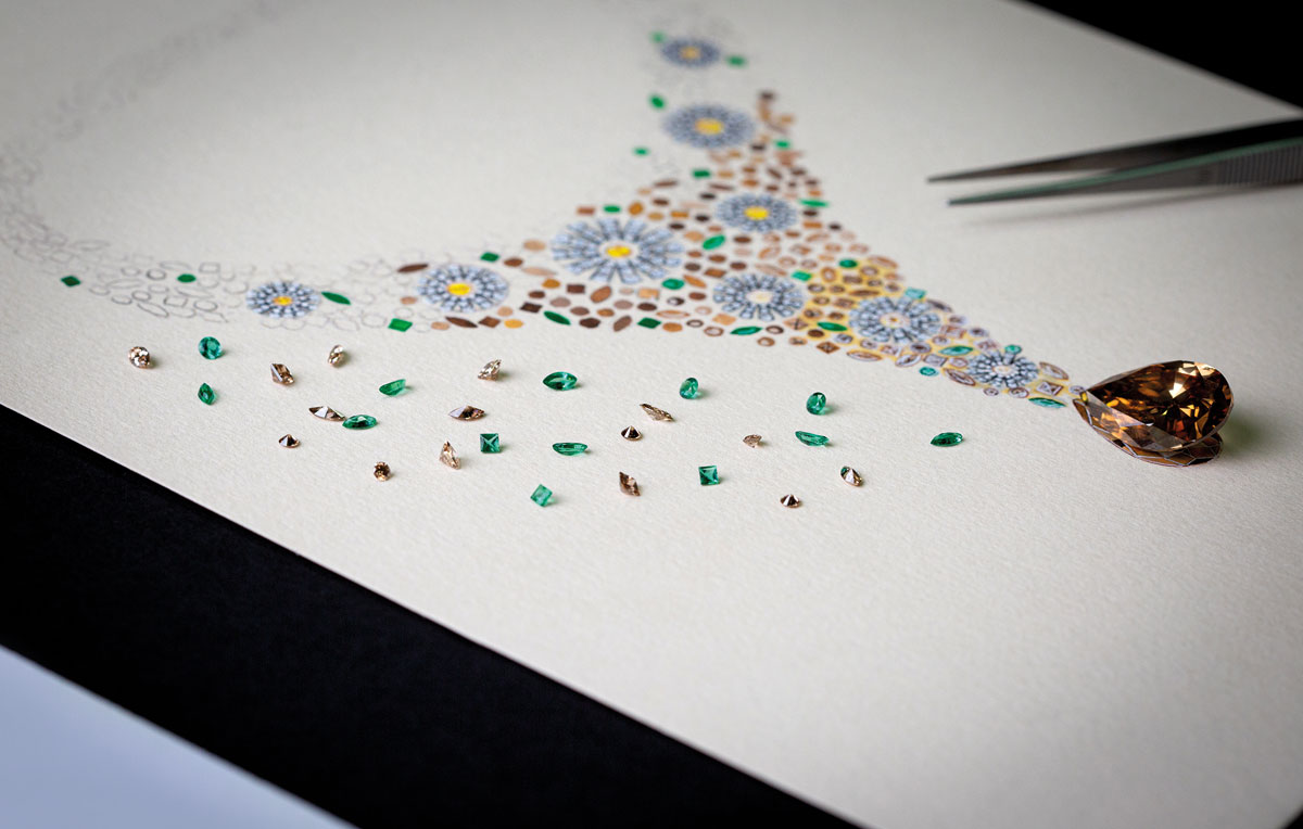[GGD]: It’s like choosing your favorite children—it’s hard to pick just one. But if I had to, I’d mention the Margarita Desert, with its cognac yellow diamond. It’s truly special. We also have a beautiful sapphire called Deep Blue, weighing 100 carats, and then the Mimosa collection, which is a personal favorite. It’s all about chaos—diamonds that look like they’re thrown together but are carefully arranged. It’s an unexpected and dynamic design.