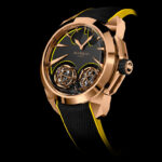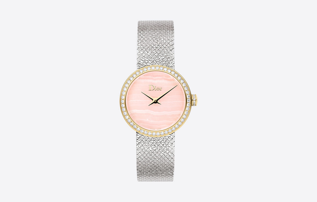 Designed exclusively for the Middle East, Dior unveils a new version of La D De Dior watch, a sublime ribbon that tells time as the the artistic director puts it, embellished with a silver Milanese mesh wristband, and an aragonite dial with a soft pink hue, the sweetest color as per Christian Dior’s description. This 25 mm quartz watch has a stainless case set with diamonds and a yellow gold bezel and crown, a tribute to femininity, indefinite elegance and the impeccable art of watchmaking.