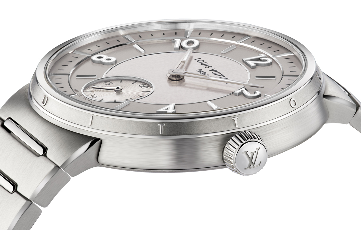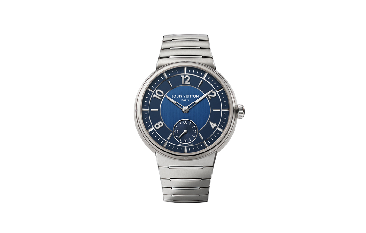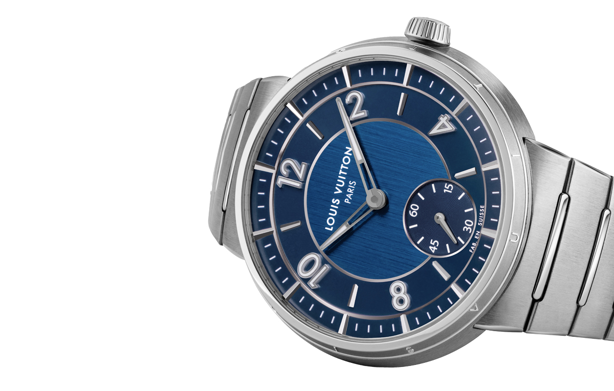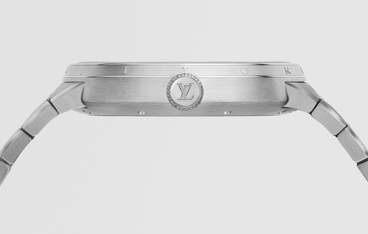 Two steel versions distinguish the launch of the new Tambour, reinforcing the designation of this collection for daily wear. A tone-on-tone model with silver-grey dial or one with a contrasting deep blue dial are the options for the introduction of the Maison’s reborn emblematic collection, an enriched Tambour with two additional firsts for Louis Vuitton — an integrated bracelet and an exclusive new and beautifully crafted automatic movement designed by La Fabrique du Temps Louis Vuitton.