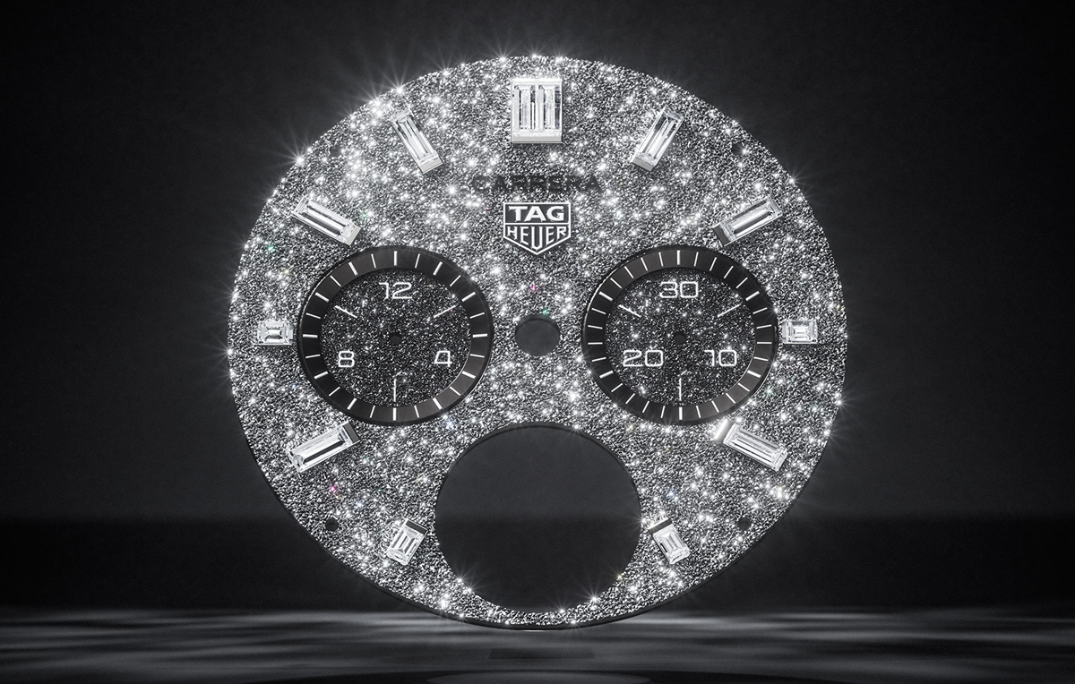 TAG Heuer’s breakthrough, Diamant d’Avant-Garde technology enabled the Swiss luxury watchmaker to use lab-grown diamonds for the first time ever, in 2022, on a chronograph case, crown, dial, and indexes. The case includes 4.3 carats of 48 lab-grown diamonds, while the bezel features 26 for a total of 1.9 carats, and the bracelet holds 34 for a total weight of 1.9 carats.