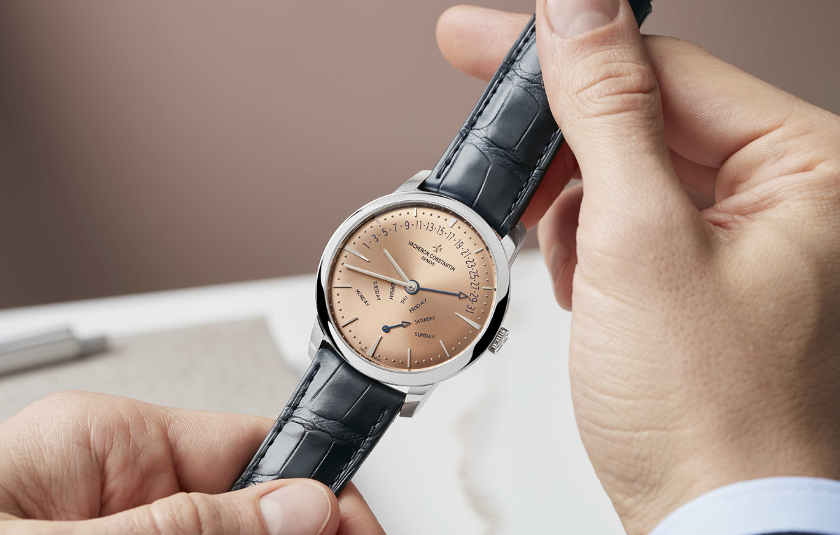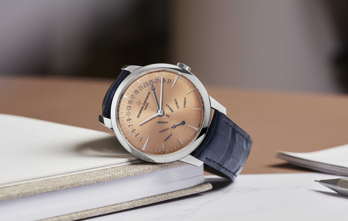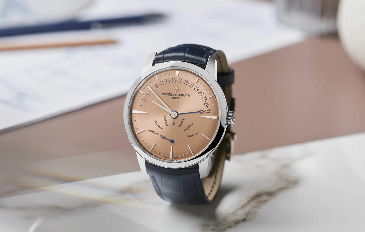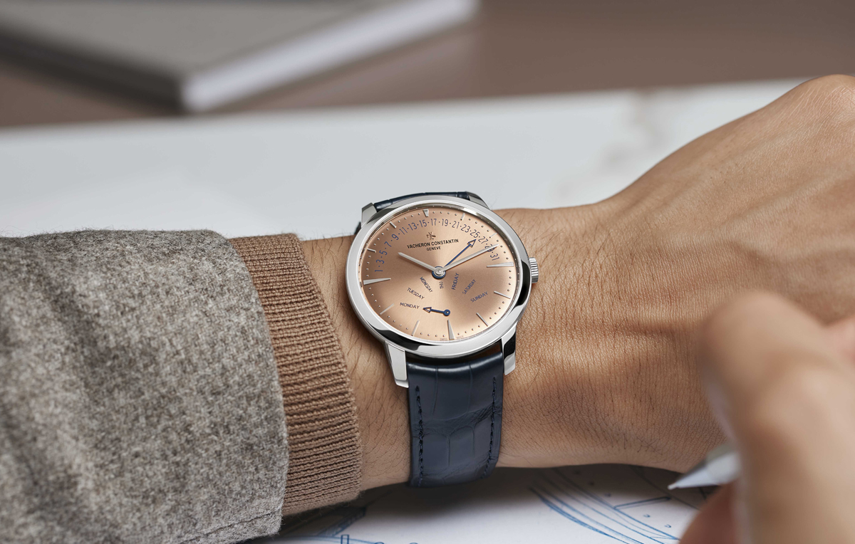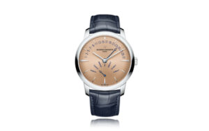 Since its founding in 1755, the Manufacture has cultivated the refinement of its watches as an art form, corresponding to one of the Bauhaus principles holding that “less is more”. This is reflected in the new Patrimony retrograde day-date in 950 platinum with a salmon-toned dial which perpetuates a refined style and elegance and technicality.