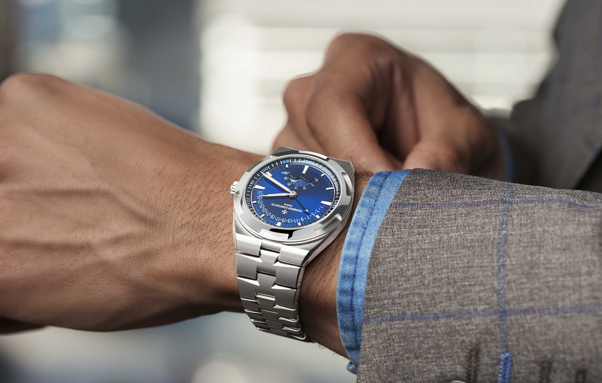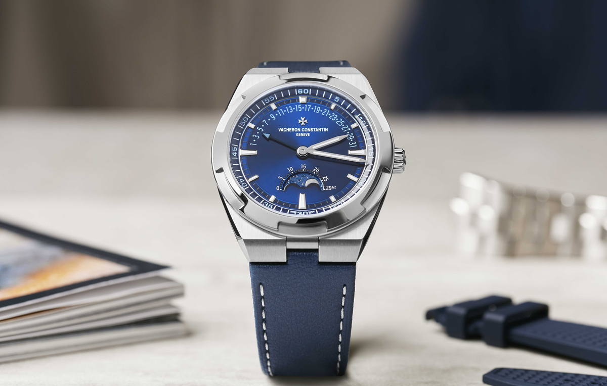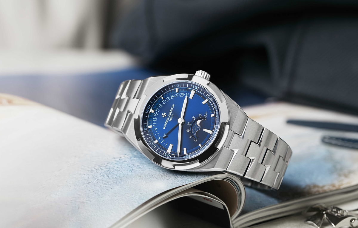 For the first time ever, the Overseas line incorporates a retrograde display, a function that is part of Vacheron Constantin’s living heritage and continually reinvents itself. The new model keeps the collection iconic attributes immediately recognisable: six-sided bezel evoking the Maltese cross, fluted crown, polished and satin-brushed finishes, translucent lacquered dial, luminescent hour-markers and hands, by combining them with a retrograde date and a precision moon-phase. Equipped with in-house 5.4mm- thick Calibre 2460 R31L/2, this timepiece reflects the grand watchmaking traditions in the inherently modern and contemporary spirit of the Overseas collection.