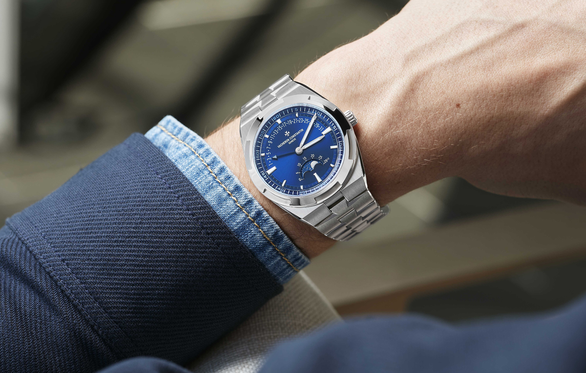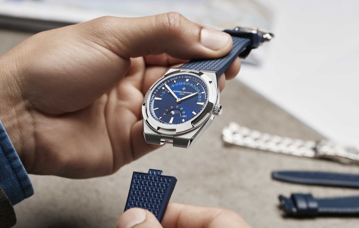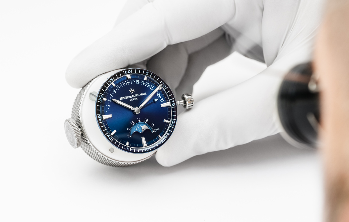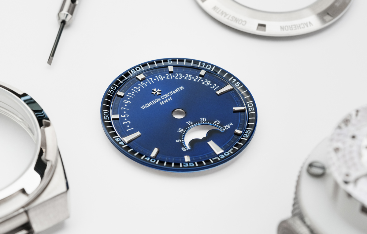 For the first time ever, the Overseas line incorporates a retrograde display, a function that is part of Vacheron Constantin’s living heritage and continually reinvents itself. The new model keeps the collection iconic attributes immediately recognisable: six-sided bezel evoking the Maltese cross, fluted crown, polished and satin-brushed finishes, translucent lacquered dial, luminescent hour-markers and hands, by combining them with a retrograde date and a precision moon-phase. Equipped with in-house 5.4mm- thick Calibre 2460 R31L/2, this timepiece reflects the grand watchmaking traditions in the inherently modern and contemporary spirit of the Overseas collection.